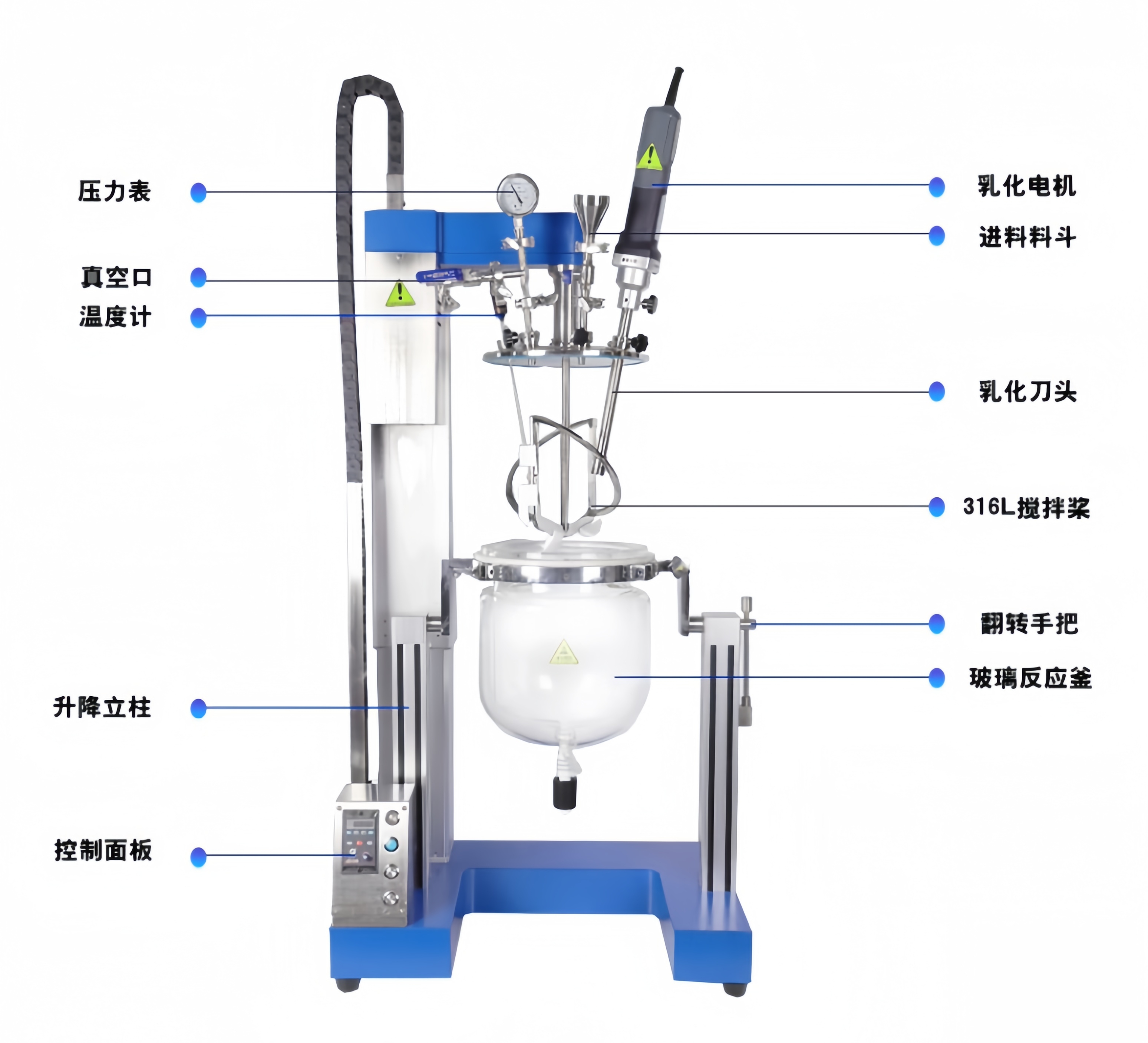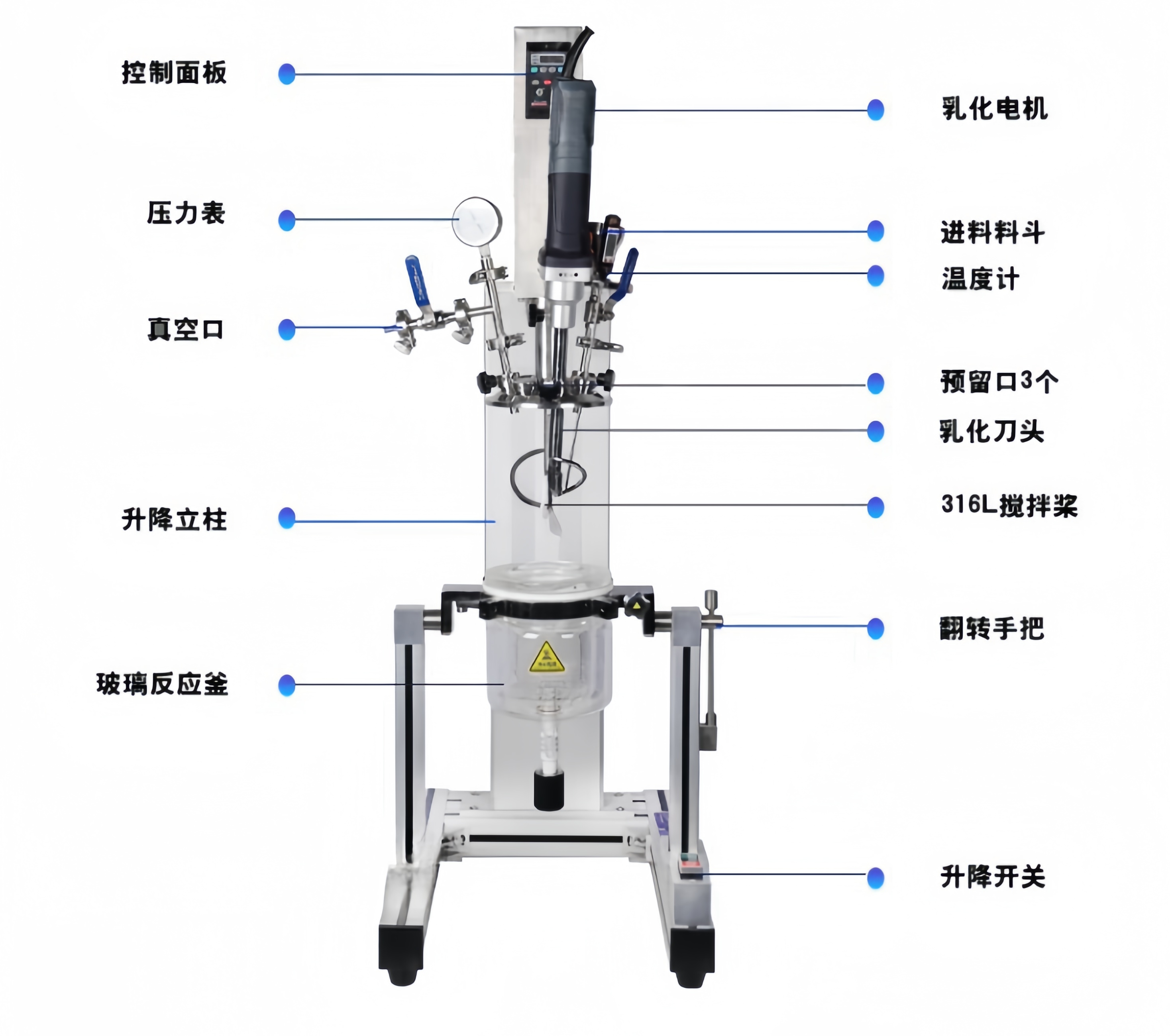 均質機口+料斗口+測溫口+真空口+3個功能口
